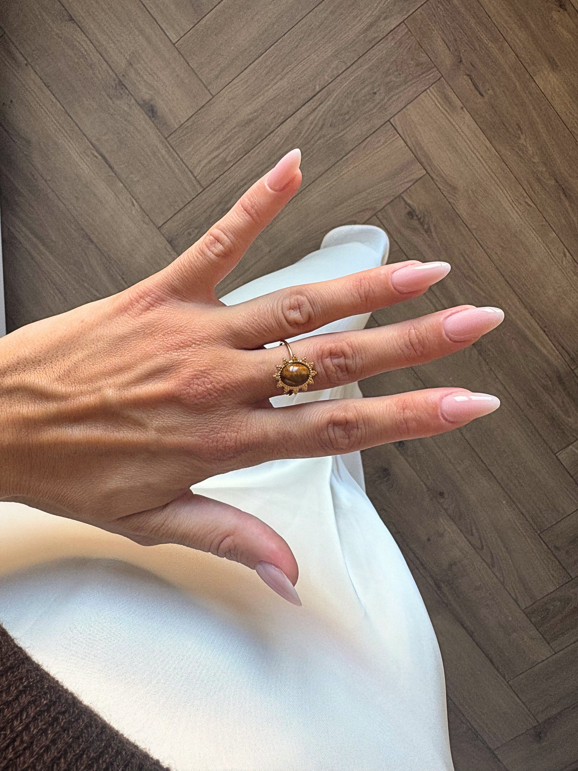 Bague en acier inoxydable composée de pierre naturelle OEIL DE TIGRE.