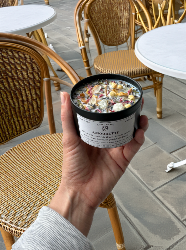 Chaque bougie est coulée à la main avec soin, dans notre atelier, pour une finition lumineuse et unique.