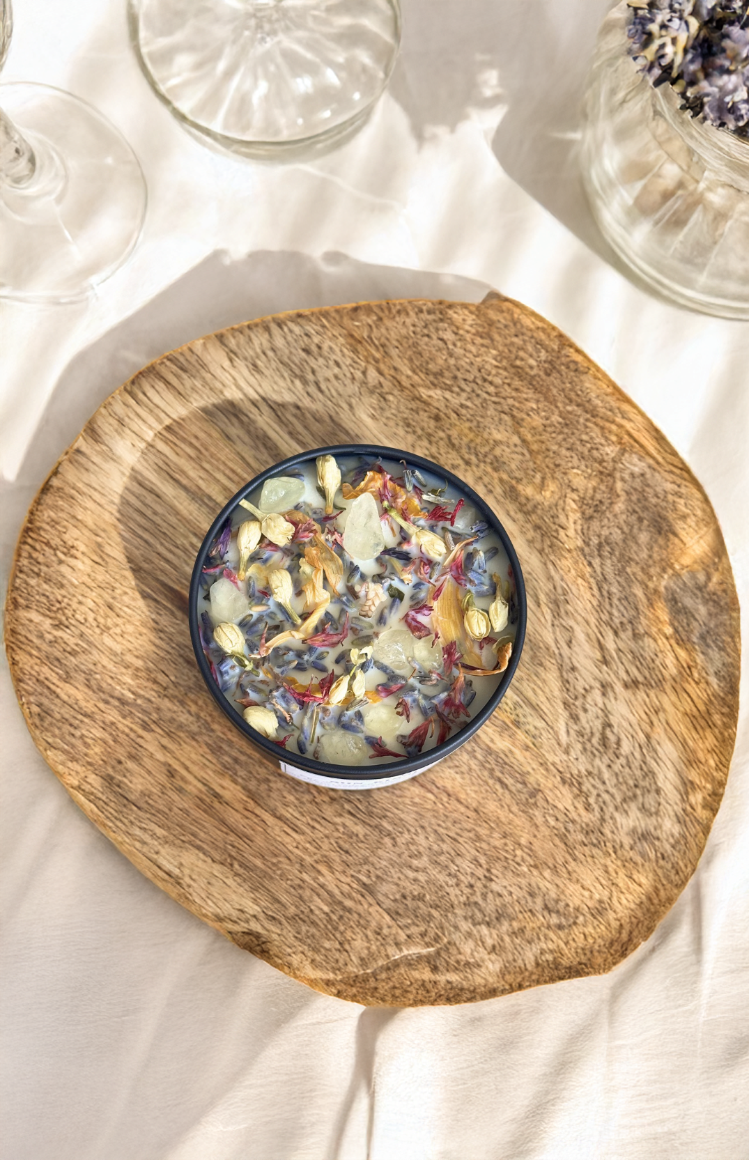 Fleurs : Lavande, bleuet rouge, Jasmin séché & pétales de tournesol dorés – sélectionnés pour leur vibration solaire
